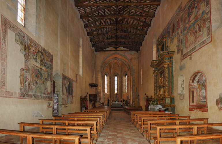 Nella foto: veduta dell'interno della basilica di San Francesco di Amatrice (Rieti, Lazio). Da italiavirtualtour.it.
