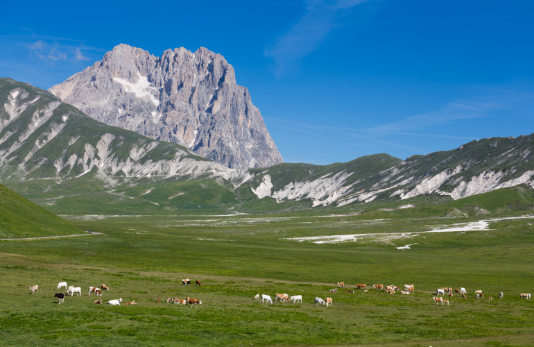 Il massiccio del Gran Sasso, con i suoi 2.912 metri di altitudine, rappresenta la più alta vetta degli Appennini e per la sua conformazione rocciosa di calcari e dolomia, ha un aspetto che ricorda le vette alpine orientali. Occupa una vasta area delle province di Teramo, Pescara e L'Aquila e il suo paesaggio è tutelato grazie al Parco del Gran Sasso e dei Monti della Laga.